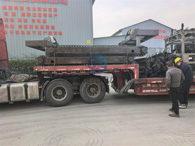 前往廊坊的链板式翻堆机缓缓驶出有机肥设备厂区车间:链板式翻堆机适用于禽畜粪便、污泥垃圾、秸杆等 有机固体废弃物的深槽好氧堆肥。该机的行走系统采用 变频调速、对不同物料的适应性较好且运行平稳、翻堆 效率高、能进行深槽作业等优点,有效缩短发酵周期, 提高生产效率及产品质量。采用变频调速行走系统,能 很好适应工作负荷的变化。可根据物料阻力情况,灵活 调节行走速度,使设备有更强的适应性和灵活性。在设 备的能力允许条件下,只需增建发酵槽,即可扩大生产 规模,提高了设备使用价值。
