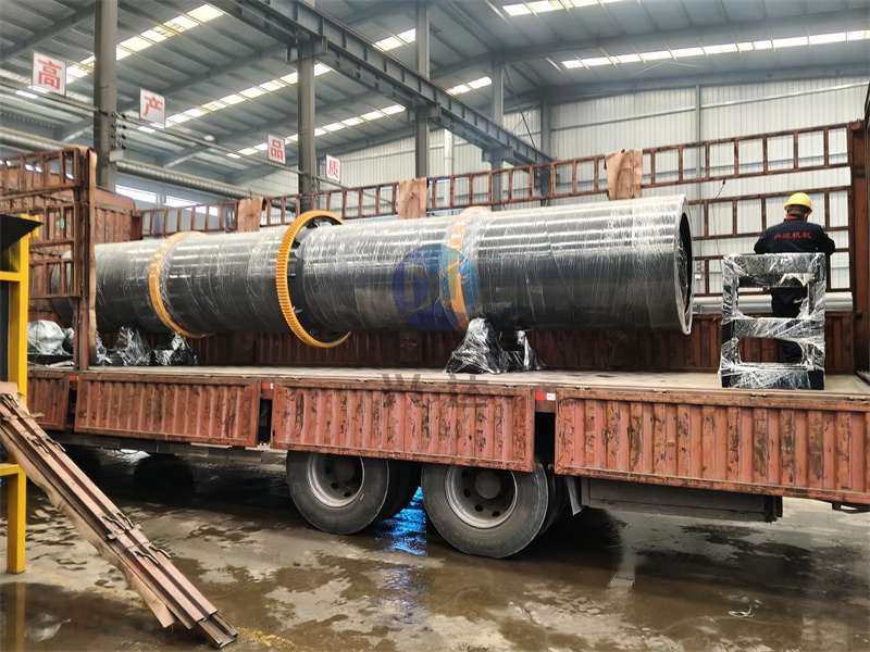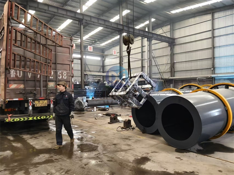 设备出口现场:有机肥烘干机及配套有机肥设备完成装车准备发往青岛港口:滚筒式烘干机的结构及工作原理主要由供热源、上料机、进料机、回转滚筒、物料破碎装置、出料机、引风机、卸料器 和配电柜构成;脱水后的湿物料加入干燥机后,在滚筒内均布的抄板器翻动下,物料在干燥机内均匀分散与热空气充分接触,加快了干燥传热、传质。在干燥过程中,物料在带有倾斜度的抄板和热气质的作 用下,至干燥机另一段星形卸料阀排出成品。