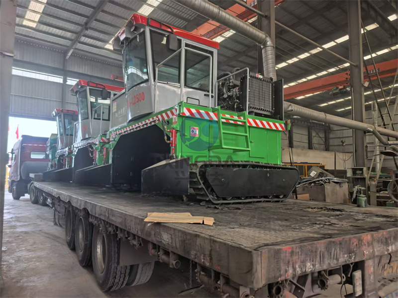 甘肃第二车:3台有机肥履带翻抛机完成装车准备出发:履带翻堆机不仅提高了堆肥生产的效率,还减少了人工劳动强度。其操作简便,只需一名操作员即可完成复杂的翻堆工作。此外,该设备还可以根据需要调整翻堆深度和速度,以适应不同类型的堆肥材料和工艺要求。在环保方面,履带翻堆机有助于减少有害气体排放,提高堆肥质量,为农业生产提供有机肥料。