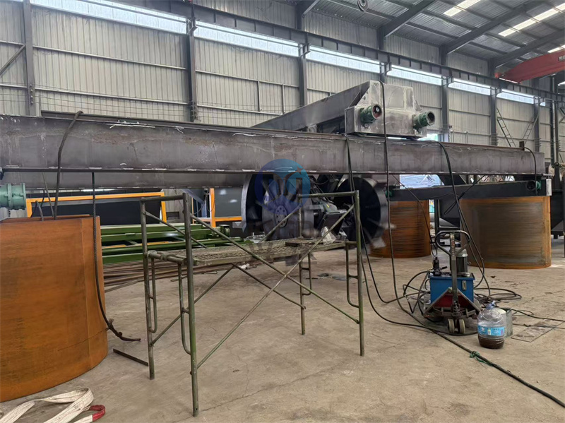 兴达工作人员正在车间打造南通客户定制的有机肥轮盘式翻抛设备:轮盘翻抛机通常配备轨道或轮胎,可沿发酵槽纵向移动。工作时,高速旋转的轮盘(带耙齿或刀片)切入粪堆,通过离心力抛散物料,实现翻堆与破碎一体化,同时促进氧气渗透,利于好氧微生物繁殖,加速有机肥发酵。