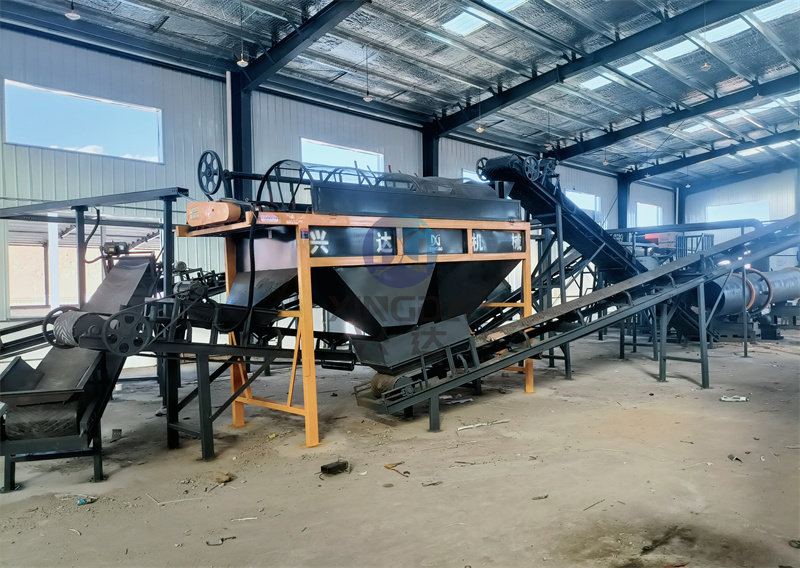 大同客户有机肥设备滚筒式筛分机的特点:滚筒式筛分机是有机肥生产中的常用设备,其主要用于成品与返料的分离,也可实现产品的分级,使得产品 均匀分类。滚筒筛分机是由滚筒、机架、漏斗、减速机、电动机等五个部分构成。物料由进料口进入滚筒后, 一方面 随着滚筒转动而被筛选, 一方面物料沿着滚筒的斜度向前流动,通过不同孔径的筛网逐步被筛出。物料筛出后落入各 自的漏斗,然后由人工或皮带输送至成品区。该机采用了组合式筛网,便于维修与更换,其结构简单、操作方便、运 转平稳,是肥料筛选分级的理想设备。