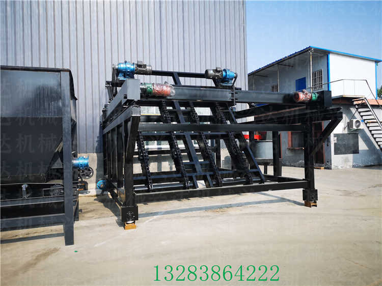 结构:该机分为两个机组:翻抛机组、换槽机组,其中翻抛机组主要负责在发酵槽内前后移动翻抛,换槽机组则负责翻抛机组与每个发酵槽之间来回移动。
